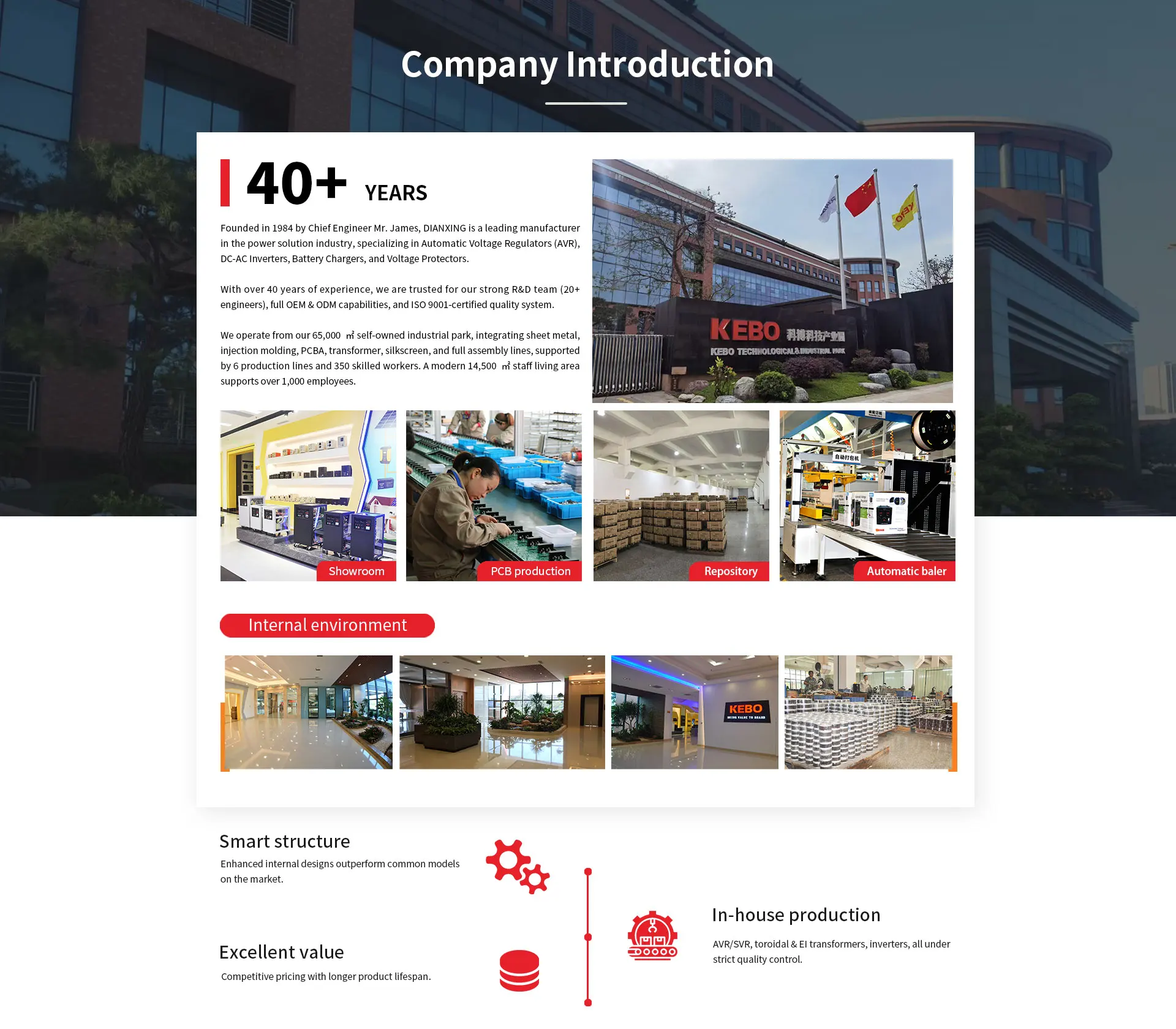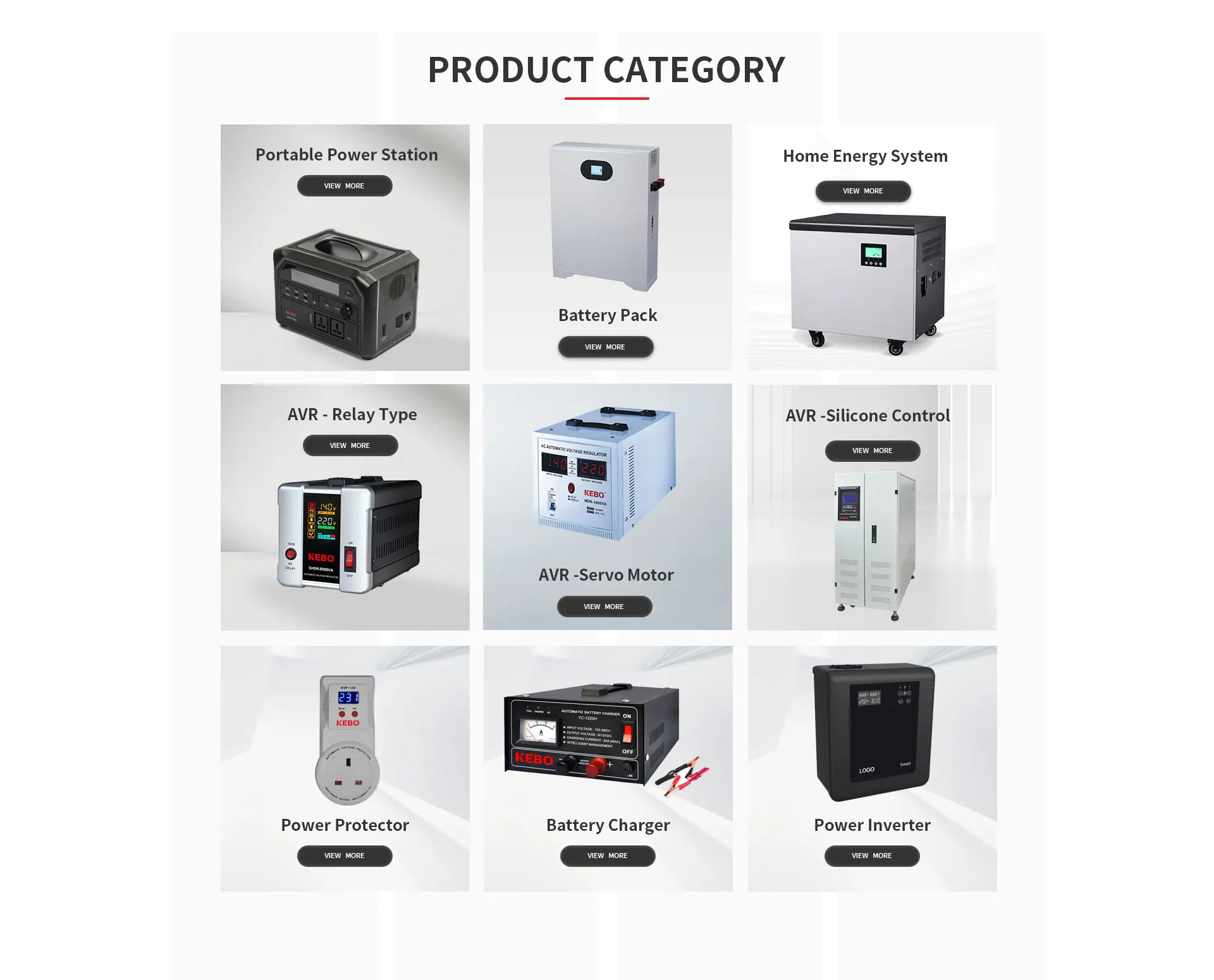 Productos principales:Regulador de voltaje automático, fuente de alimentación ininterrumpida, inversor, protector de voltaje, cargador de batería